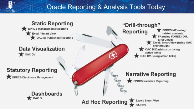- What Oracle EPM/BI reporting tool can bridge that gap? For instance, FR cannot talk to other Cloud instances so will you need to move to Smart View, EPRCS, or another reporting tool for this report?