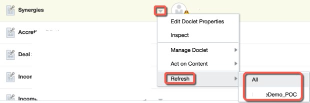 2. Refresh each report reference doclet individually. This is more manual, but will cost you only a little bit of extra time if you don’t have many to refresh. This option is especially useful if you have only one report reference doclet to refresh.
