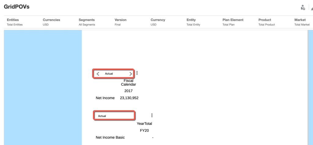 Now I can see the grid POV dimensions appear above each grid. I can interact with these POV dimensions just like before, it’s just that the placement is different on the report. #trainingissue