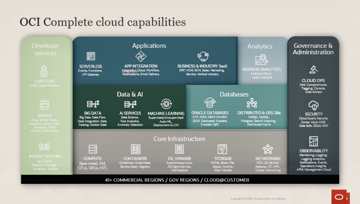 But was it a costed add-on service or part of the Analytics platform? Philippe clarified OCI AI Services was already part of the Analytics solution. This is all integrated into the Oracle Cloud platform. Wow. He shared the following Oracle slide to give a better picture of how this all fits together: