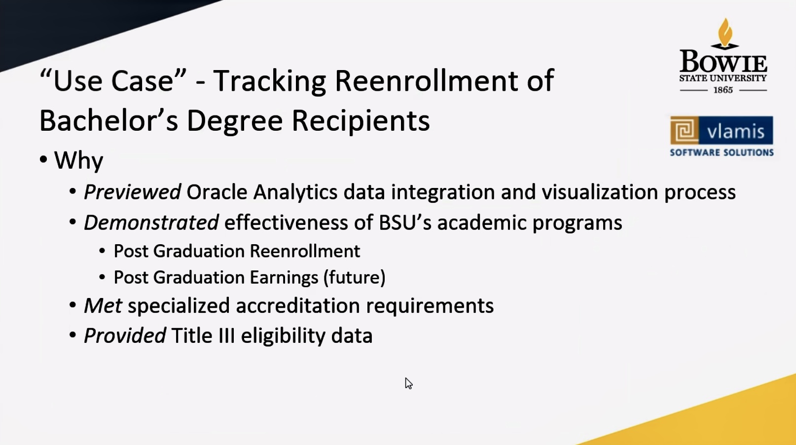 Bowie State University, a customer in higher education, is also actively using Oracle Analytics. As shown in the slides above, they use the technology to better measure enrollments.